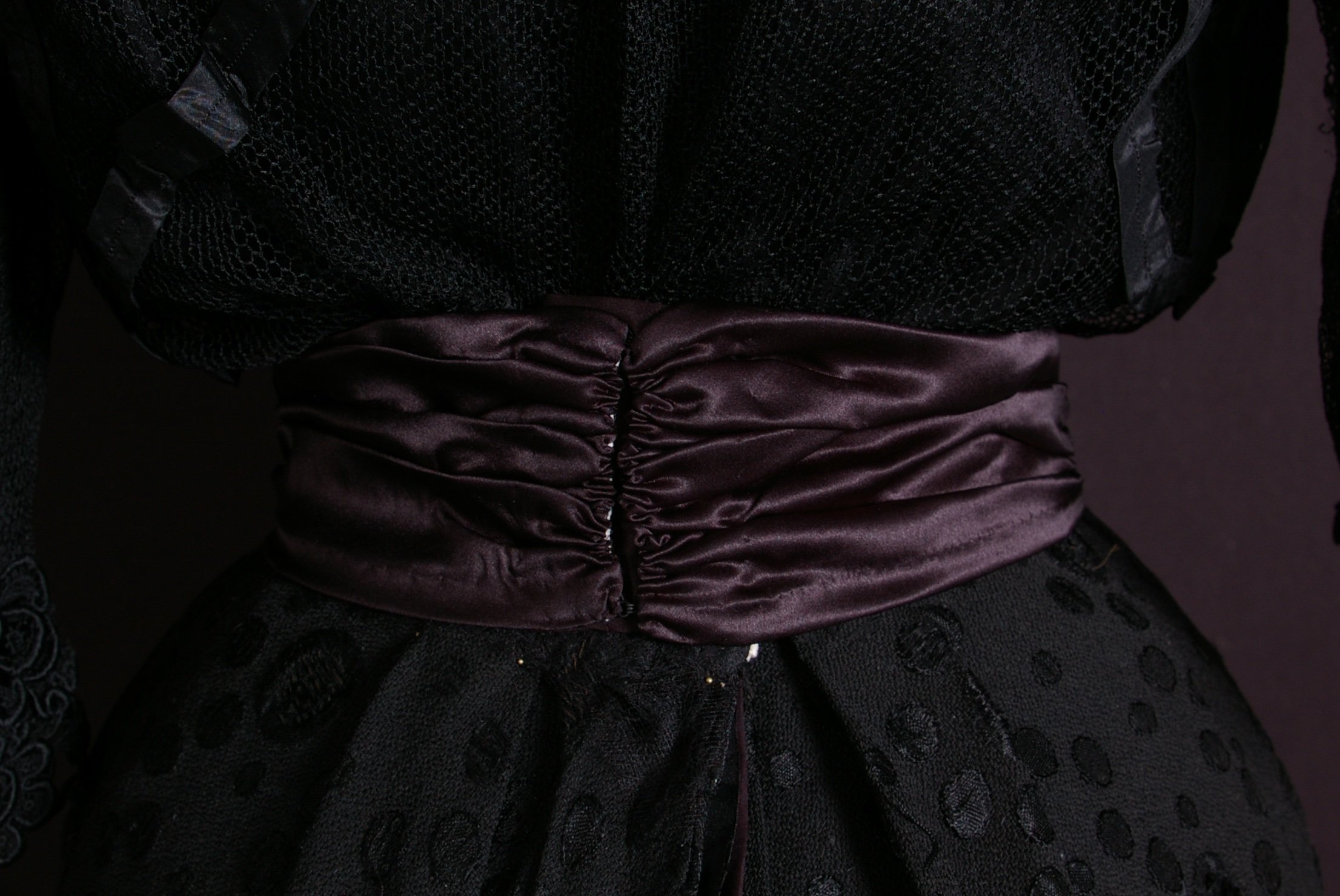 The final belt was constructed out of black silk and had plastic stays at the center back.