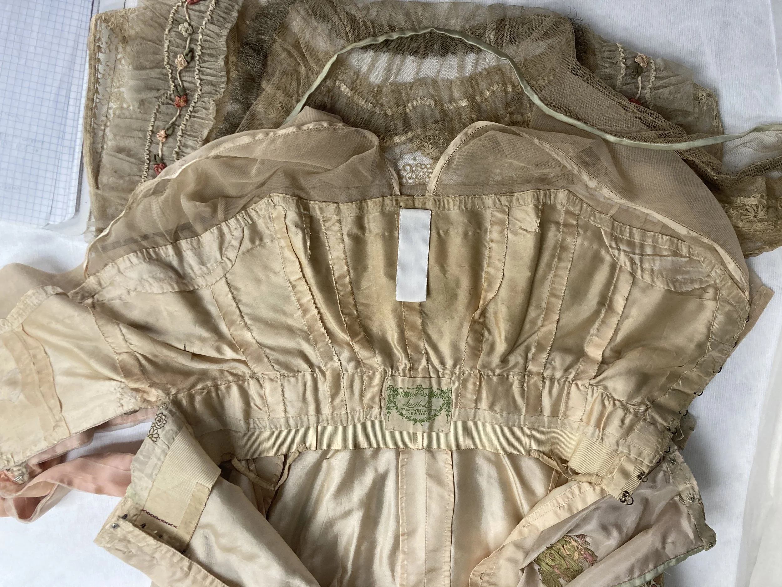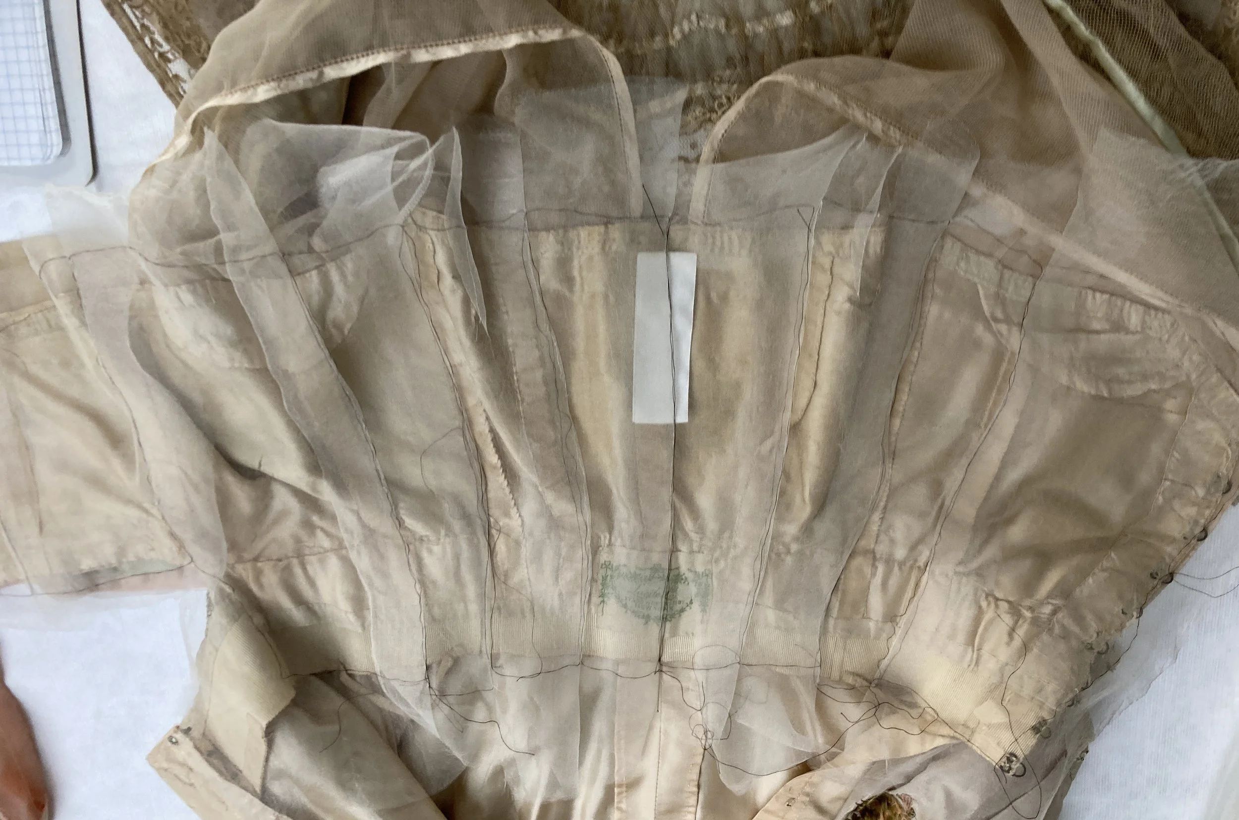 After Treatment- Back skirt bodice opening consolidated with net overlay. Photo Credit: Margaret O'Neil