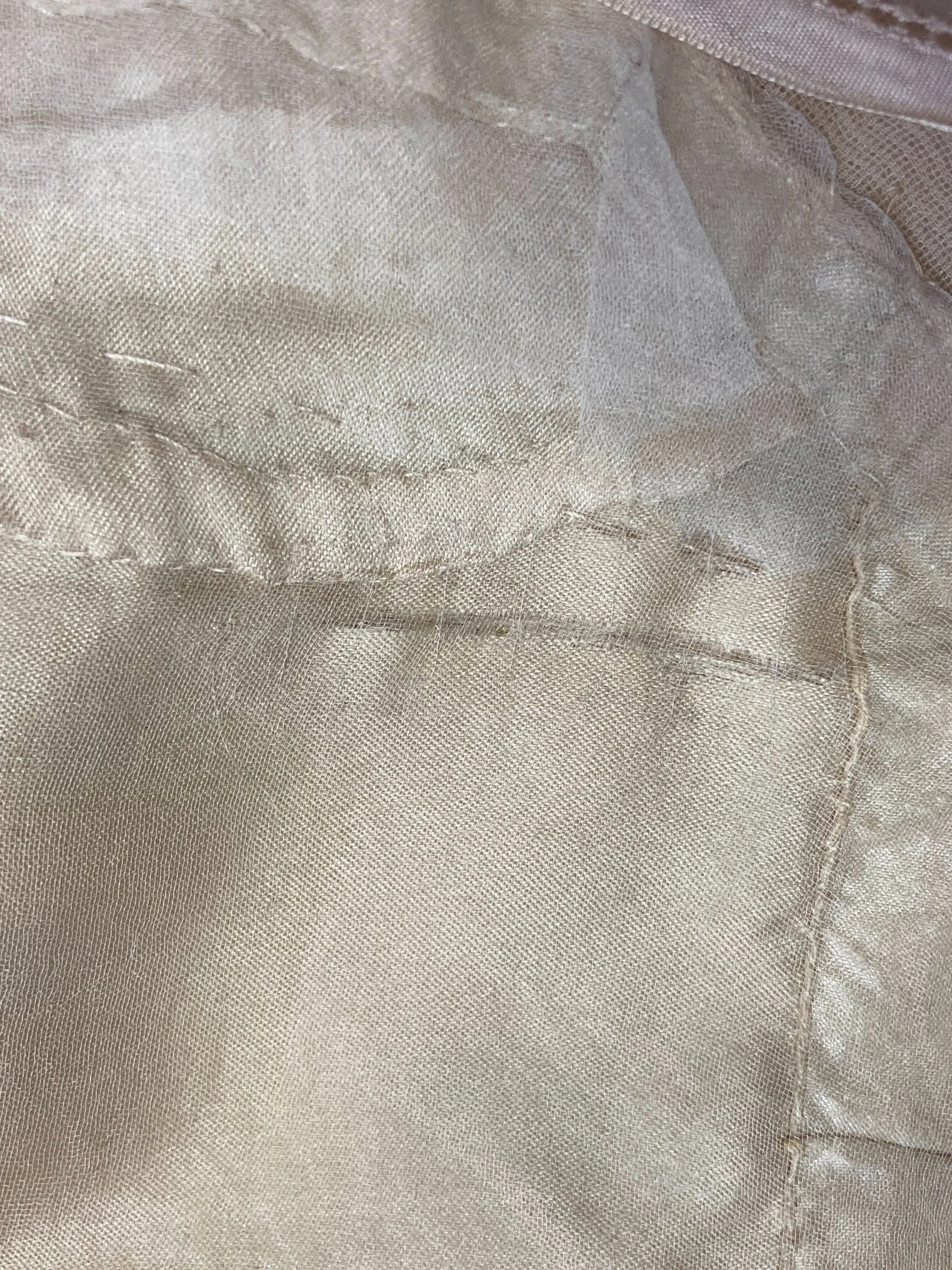 After Treatment- Silk skirt lining near center back opening consolidated with net overlay. Photo Credit: Margaret O'Neil