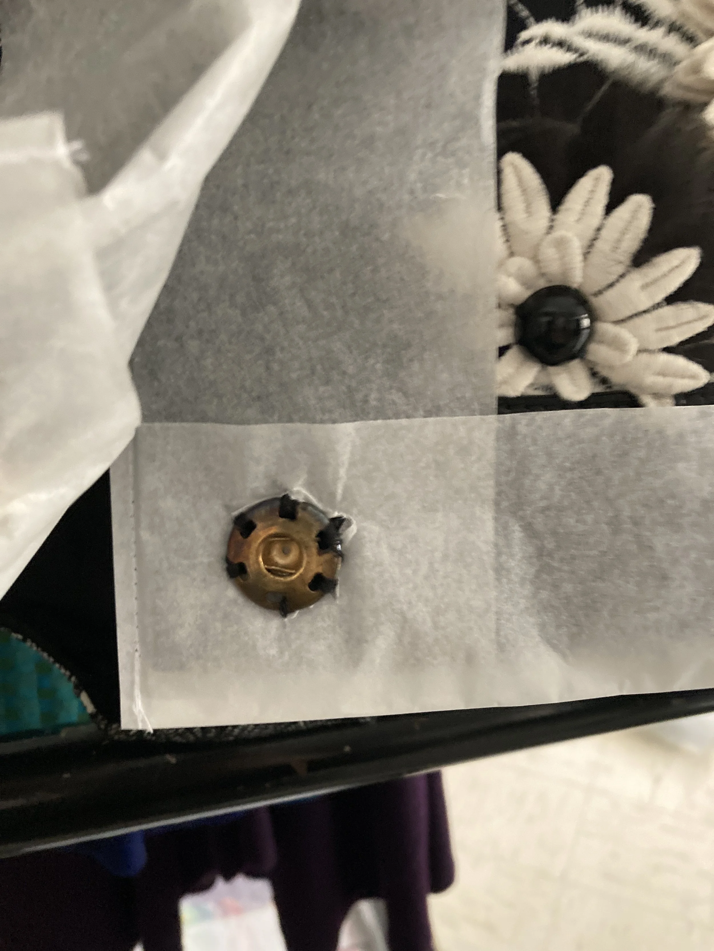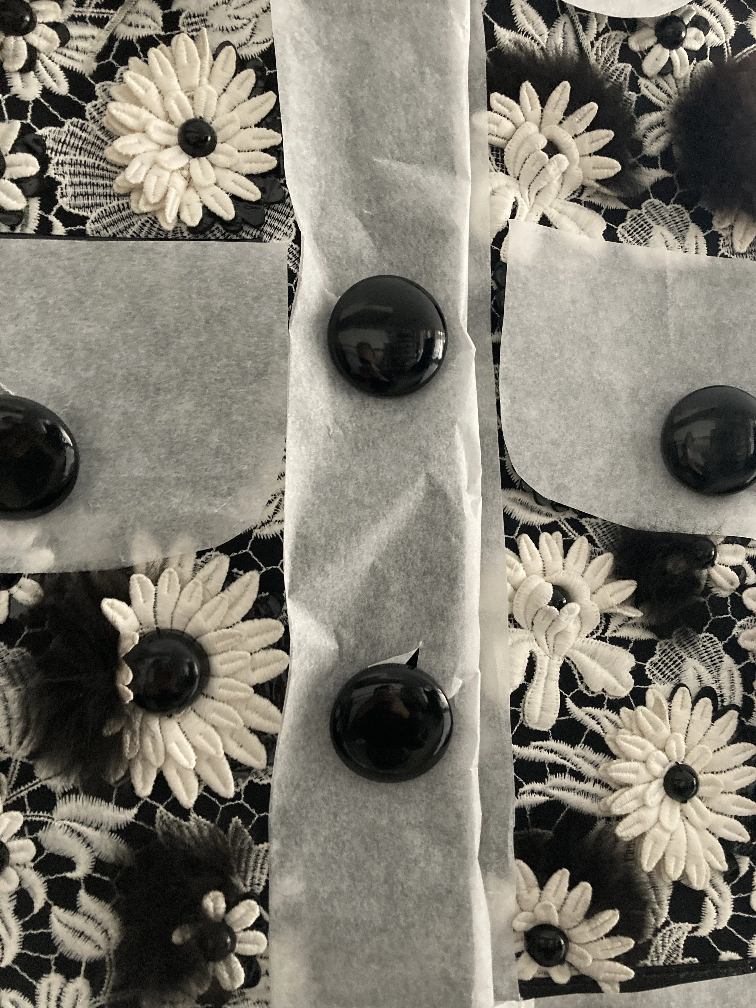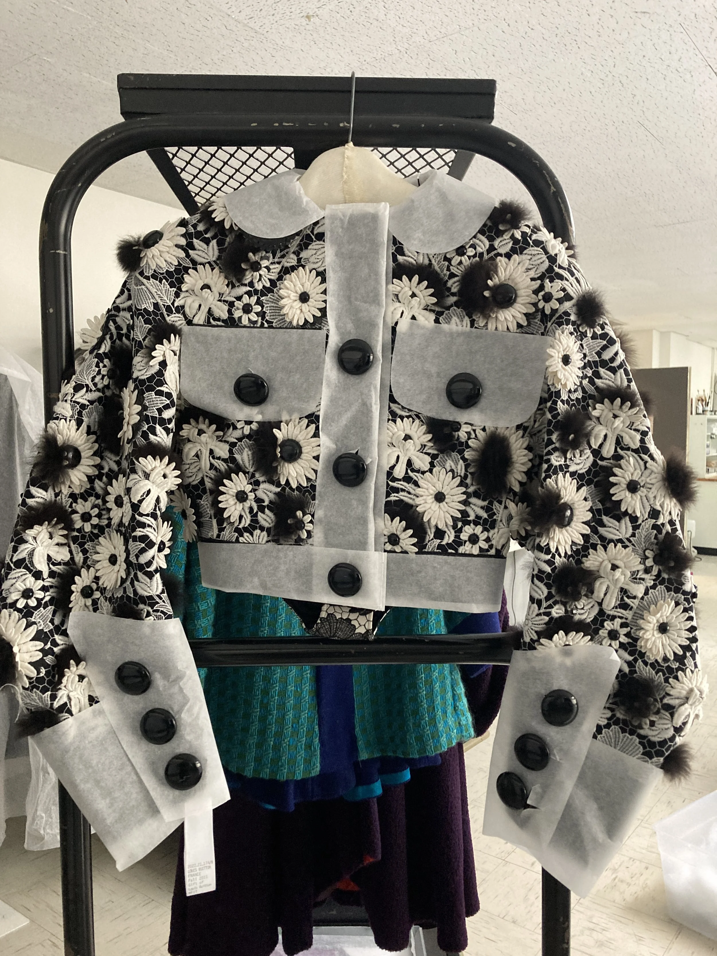 Louis Vuitton jacket with vinyl trim covered in parchment paper for storage. Photo Credit: Margaret O’Neil