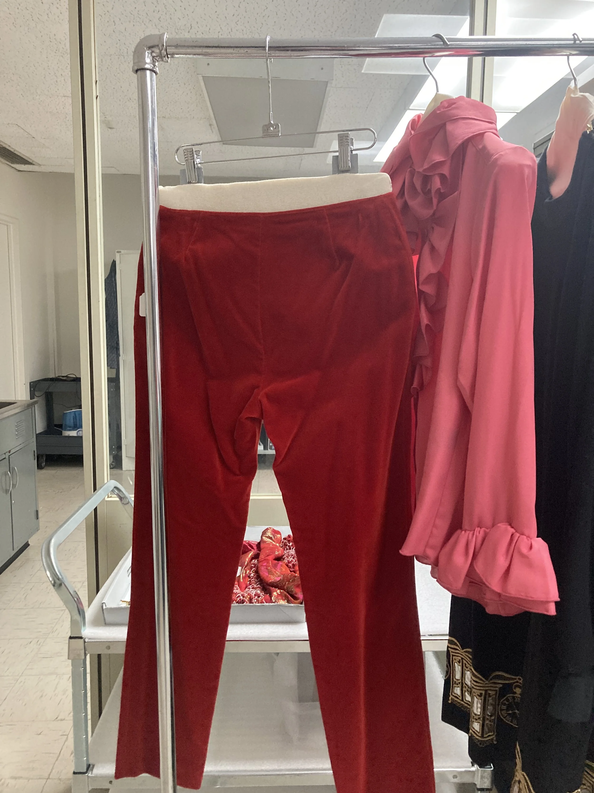 Additionally, synthetic vinyl and polyurethane garments are covered with parchment paper so they do not stick to themselves or other objects. Garments with sequins, beading, or any other embellishment that may catch on other objects are covered with a silk habotai garment cover.